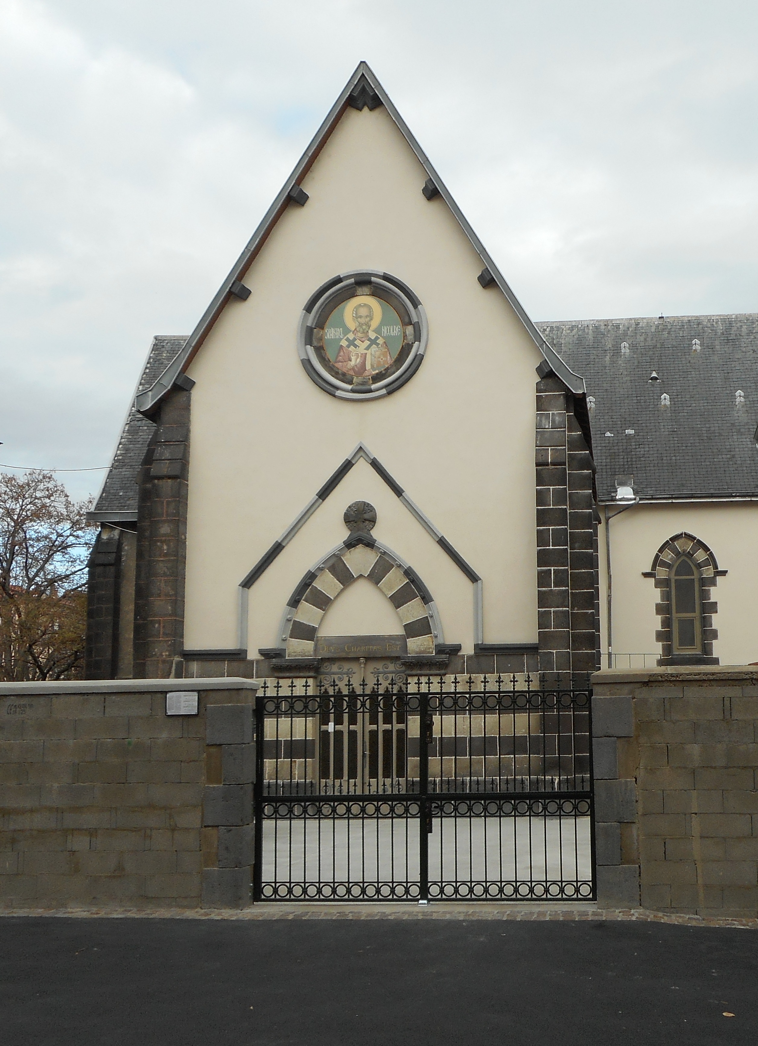 63000 Clermont-FerrandEste prima şi unica biserică ortodoxă din Clermont-Ferrand, închinată Sfântului Nicolae (hram la 6 decembrie), a cărui icoană tronează pe faţadă. La origine, capelă catolică a Surorilor „Sf. Iosif” (1870-1977), apoi moschee (1977-2011), biserica este din 3 septembrie 2012 proprietatea „Bisericii Ortodoxe Române din Clermont”.