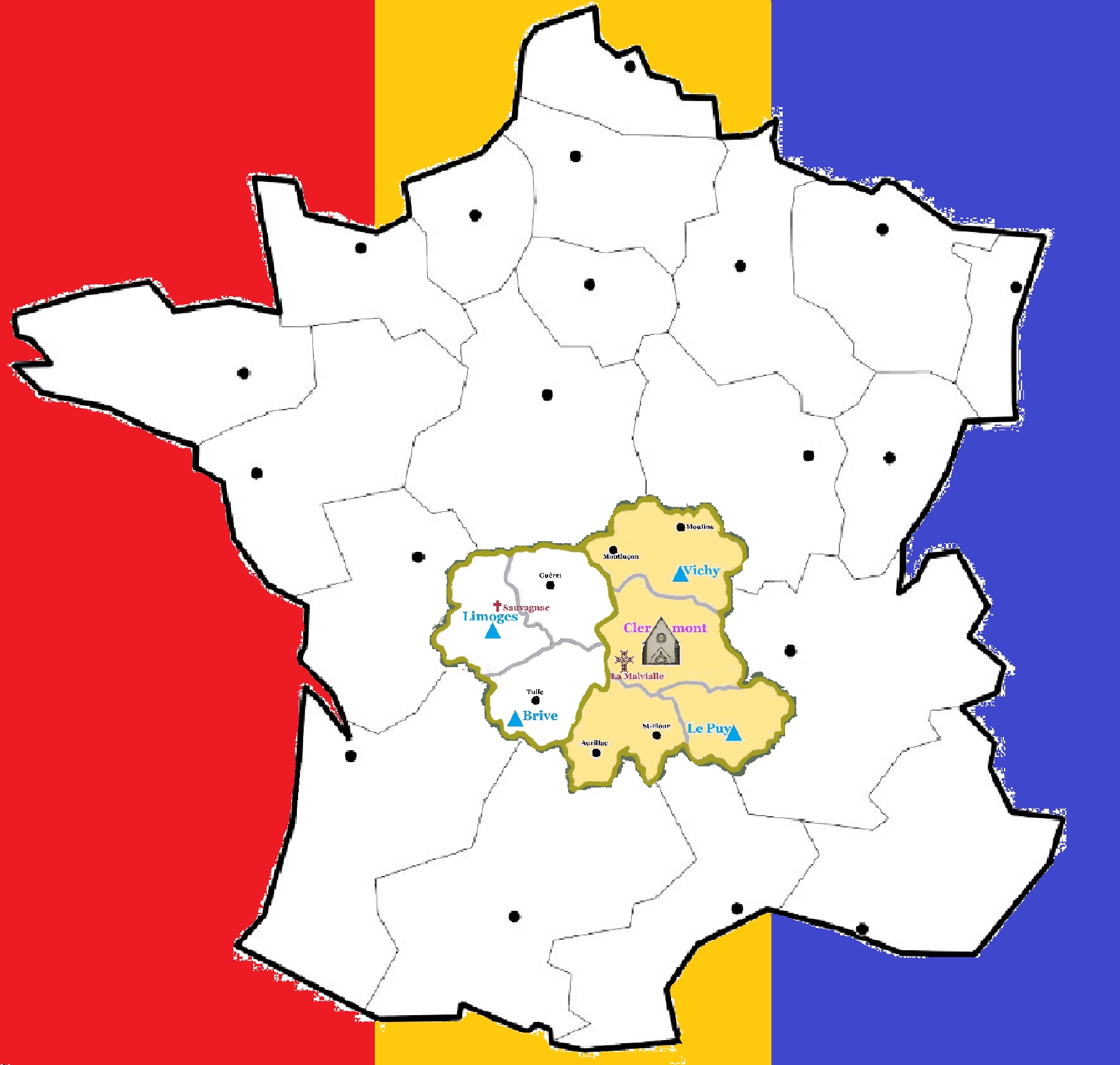 A fondat și comunitățile din regiunea Limousin: Limoges (Paști 2011, ceea ce a permis și redeschiderea mănăstirii de la Sauvagnac) și Brive (Paști 2017), precum și cele de la Le Puy-en-Velay (februarie 2016) și Vichy (martie 2017) din Auvergne.